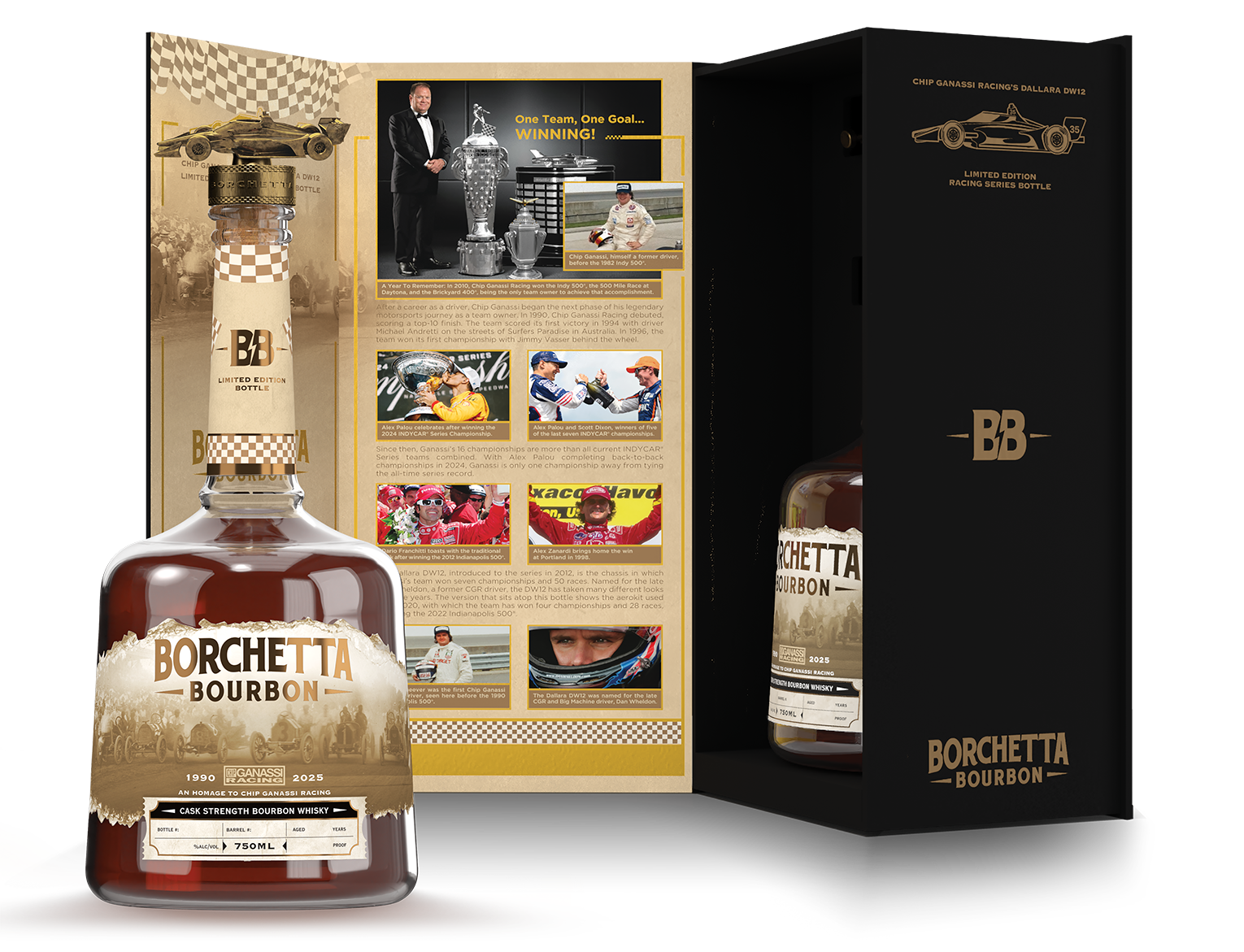 Borchetta Bourbon Grand Prix Series is a special edition, limited allocation product with a unique bottle and display packaging design commemorating Nashville’s 1911 inaugural Indy-style car race. The Borchetta brothers' passion for motorsports and fine spirits was pinnacled in 2021 with the return of open-wheel Indy-style racing to Nashville. After more than a century-long hiatus, IndyCars® were coming to race through the streets of downtown Nashville in the Big Machine Music City Grand Prix. We had a story to tell. And I had a great idea! ...LFG!