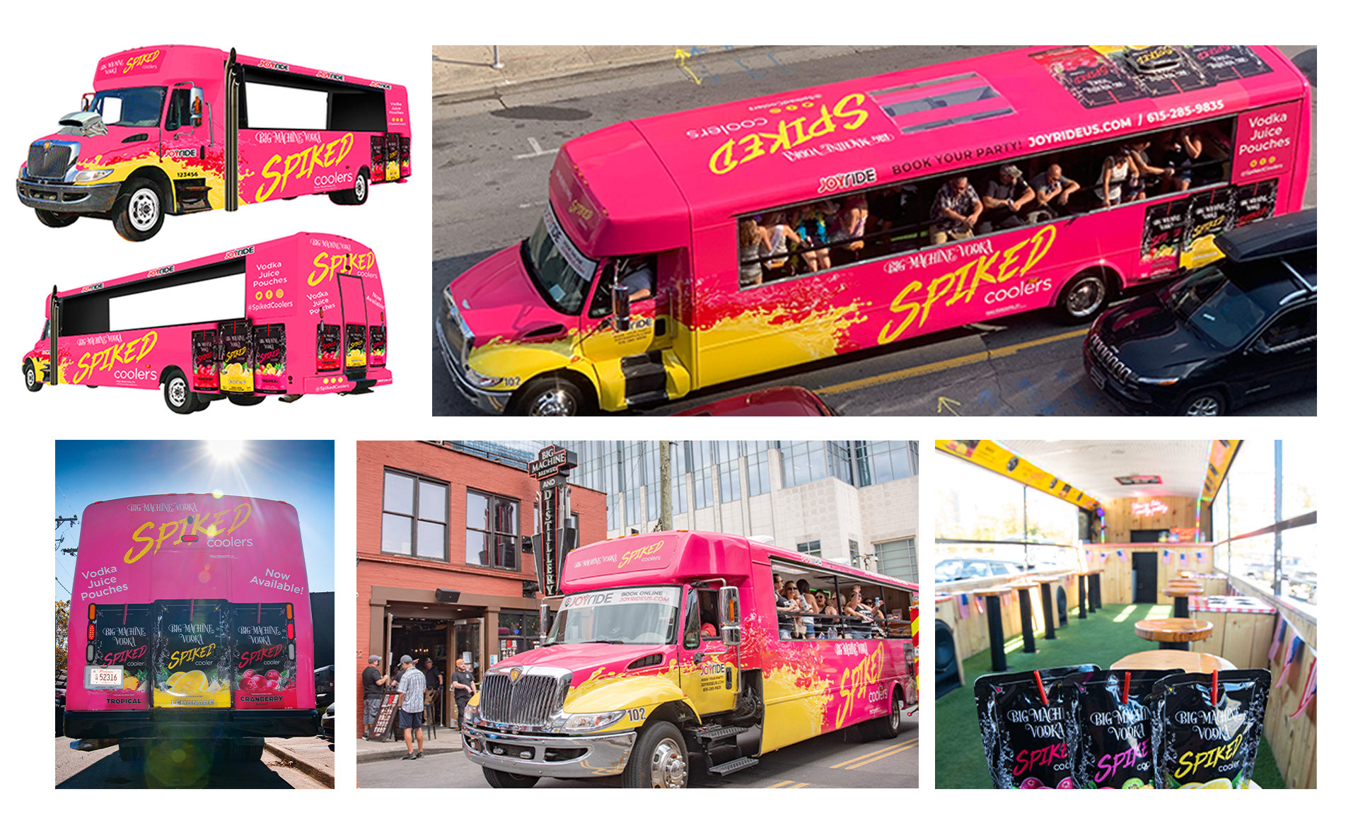 Spiked Coolers is the original RTD straw in pouch product for BMV. I wanted this to look like mouth watering candy with vibrant high contrast neon color palettes. I wanted it to feel familiar, but also completely new. Something that would make you discard a crappy RTD seltzer and make the consumer feel cool with it in hand. I took inspiration from brands like Starburst, Laffy Taffy, Monster Energy, and Red Bull. The goal was to make this brand noticeable on any promotional application, from vehicles, to gaming, to outdoor sports, to fashionable apparel.