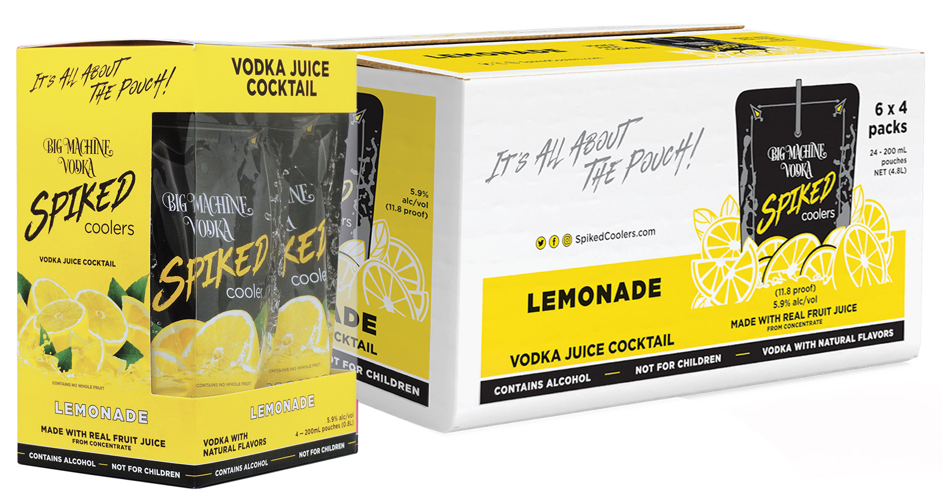 Spiked Coolers was Big Machine Distillery's first nationally distributed product, launched in 2021. Within the first year, over 1 Million pouches were sold across 26 U.S. states. Spiked Coolers are Ready-To-Drink (RTD) cocktails in an eco-friendly flask style pouch, featuring Big Machine Vodka, real fruit juices, and natural flavors (no artificial flavors or sweeteners).