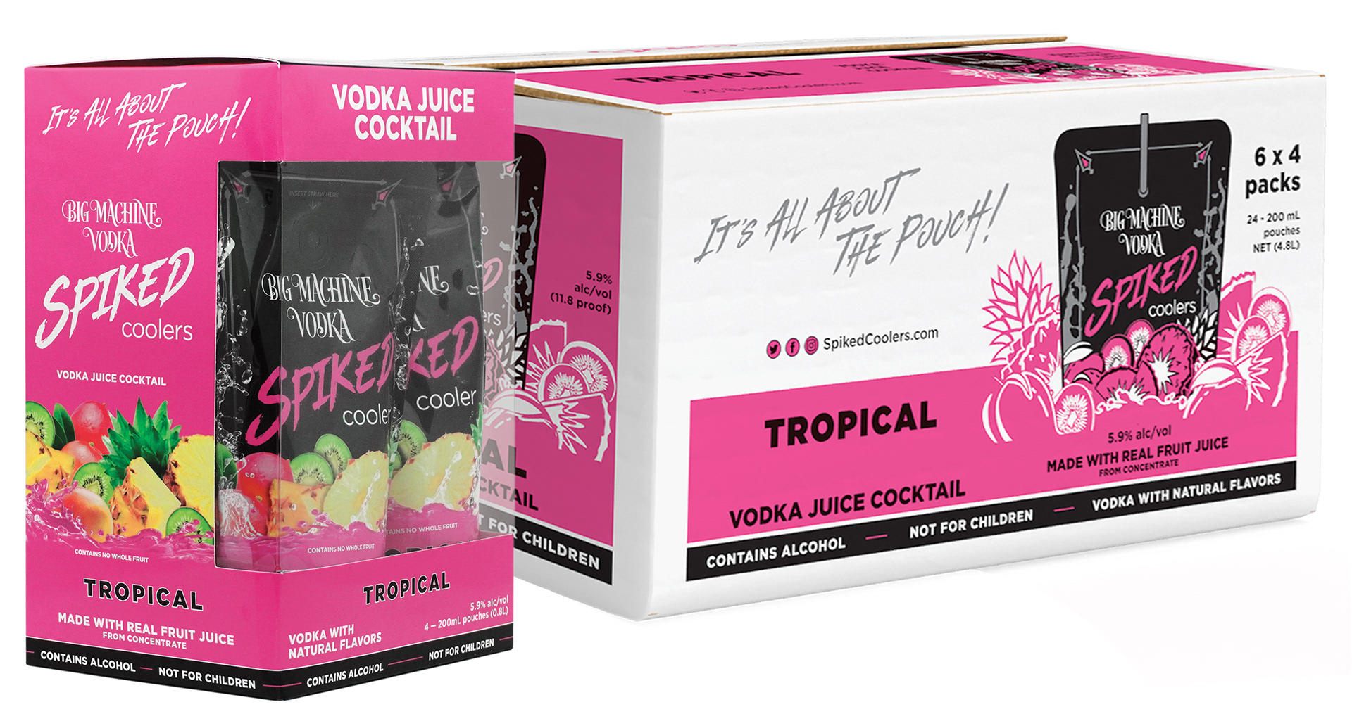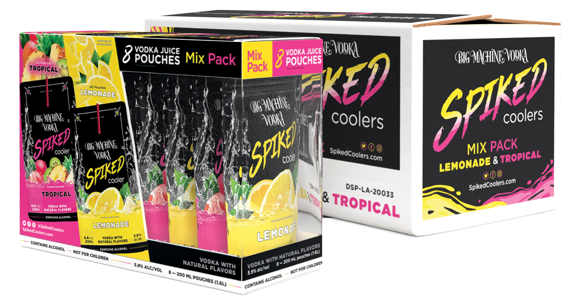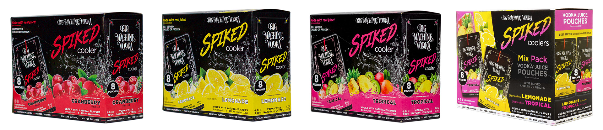 Spiked Coolers was Big Machine Distillery's first nationally distributed product, launched in 2021. Within the first year, over 1 Million pouches were sold across 26 U.S. states. Spiked Coolers are Ready-To-Drink (RTD) cocktails in an eco-friendly flask style pouch, featuring Big Machine Vodka, real fruit juices, and natural flavors (no artificial flavors or sweeteners).