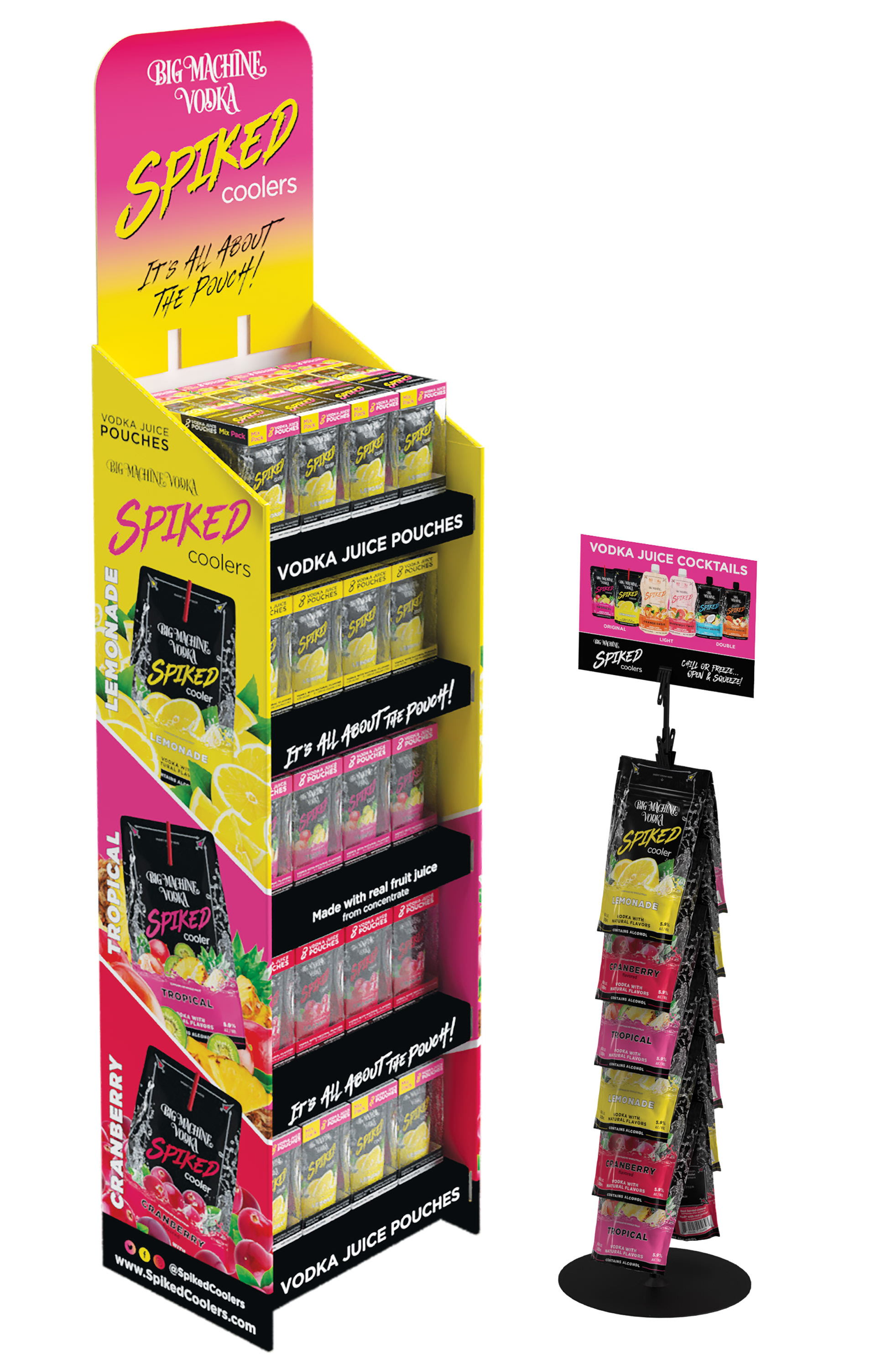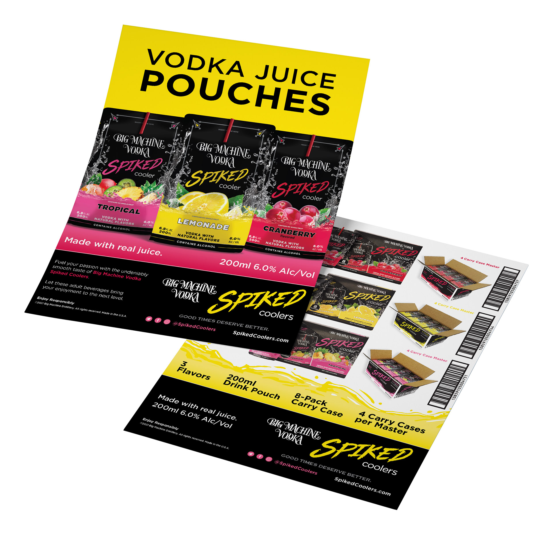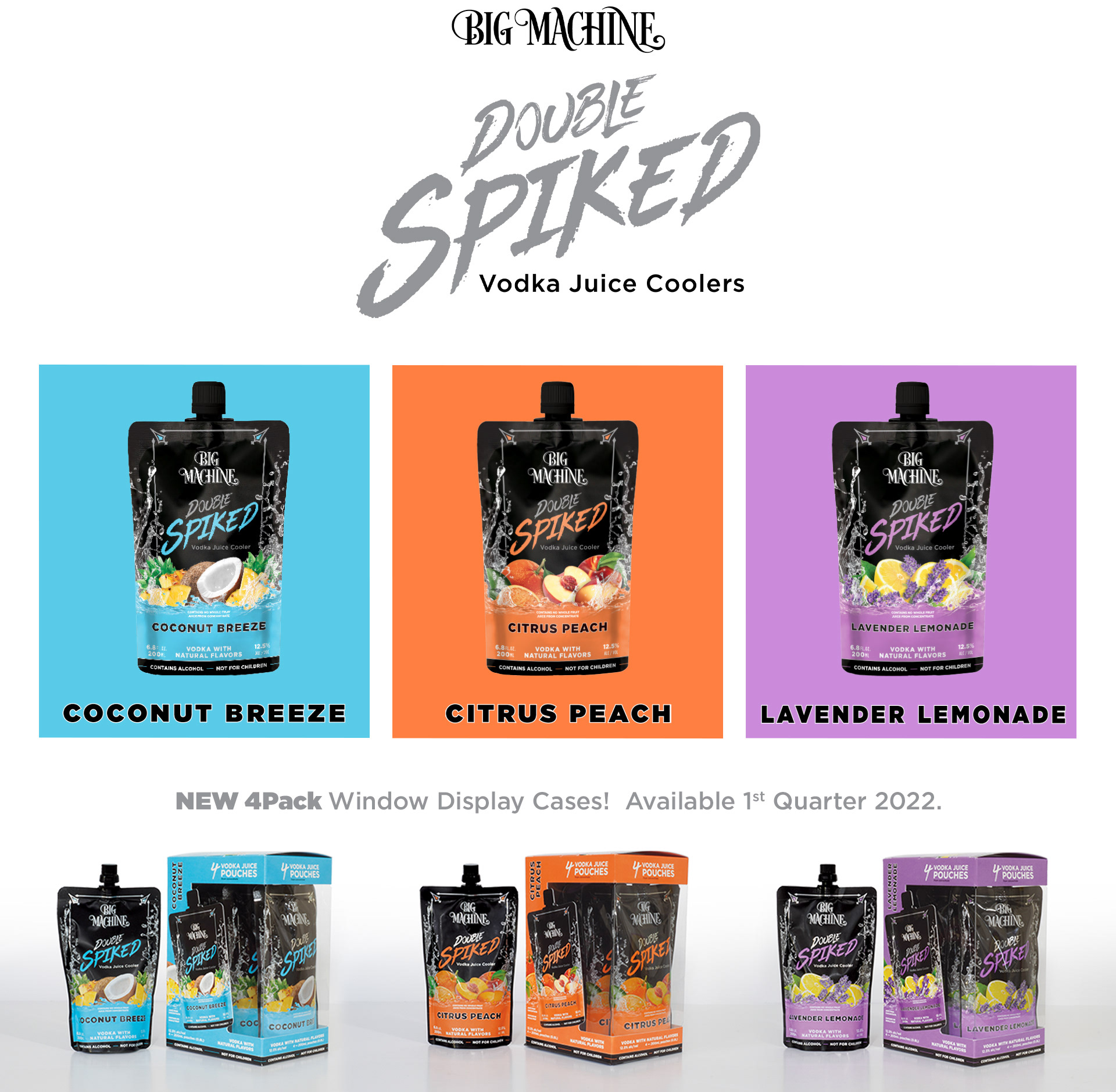 Spiked Coolers was Big Machine Distillery's first nationally distributed product, launched in 2021. Within the first year, over 1 Million pouches were sold across 26 U.S. states. Spiked Coolers are Ready-To-Drink (RTD) cocktails in an eco-friendly flask style pouch, featuring Big Machine Vodka, real fruit juices, and natural flavors (no artificial flavors or sweeteners).